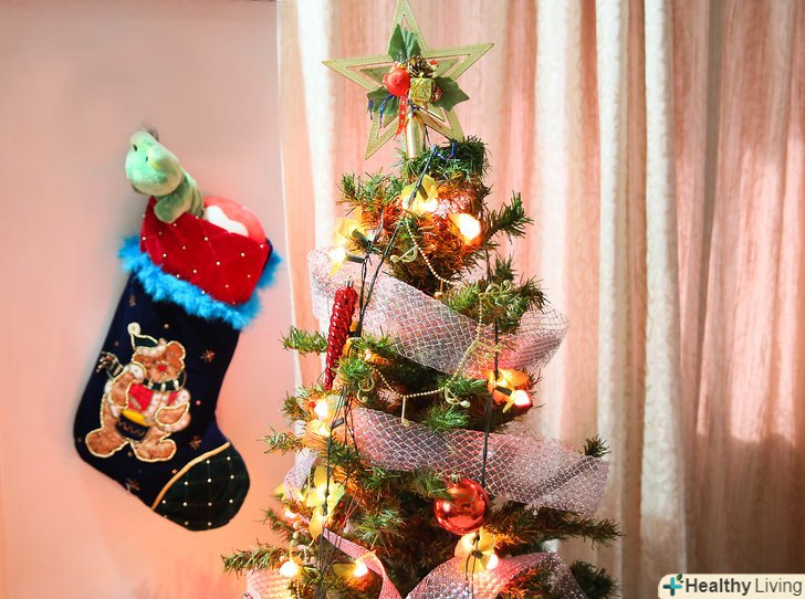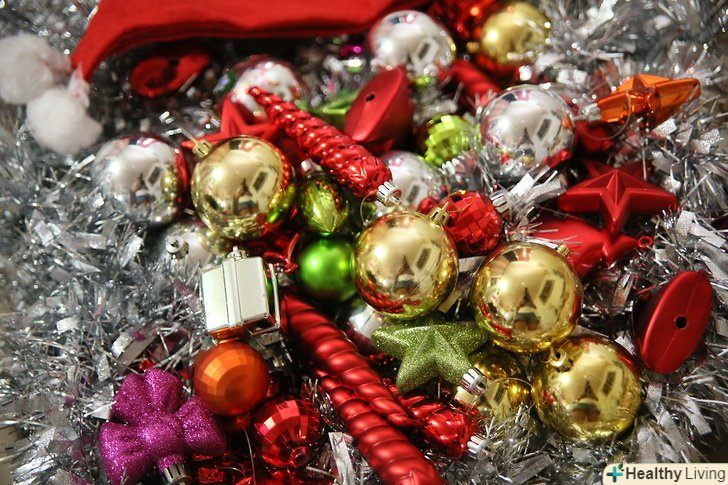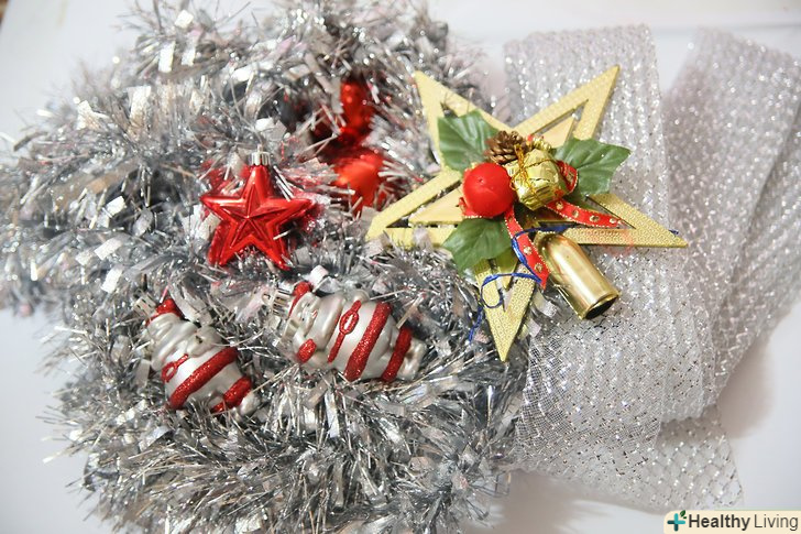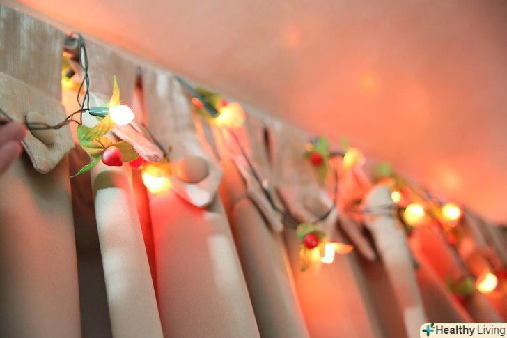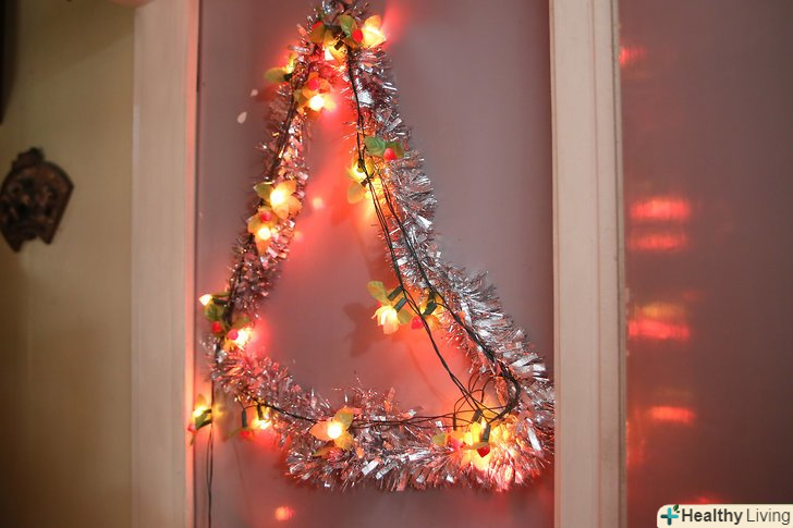 Повісьте трохи мішури. якщо ви не можете знайти (або не любите) гірлянди з вогниками, замість них можна розвісити по кімнаті мішуру. Найкраще прикріпити мішуру до стелі і вікон. Якщо ви збираєтеся кріпити мішуру за допомогою скотча, то краще купити прозорий — він буде менш помітний.