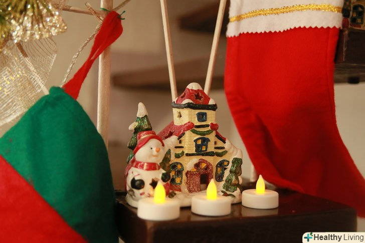 Купуйте ароматичні свічки, воскові фігурки або попурі. якщо ви не можете повісити багато прикрас, все одно є можливість надати святкову атмосферу кімнаті, розставивши по ній ароматичні свічки, воскові фігурки і попурі. Вам навіть не потрібно запалювати їх! Багато ароматичні свічки створюють настрій самі по собі. Якщо у вас є свічки, подумайте про те, щоб розставити три різних за розміром свічки: зелену, червону, жовту або срібну. Поставте їх на одну тарілочку або в один свічник. Нижче перераховані новорічні аромати:- Імбирний пряник;