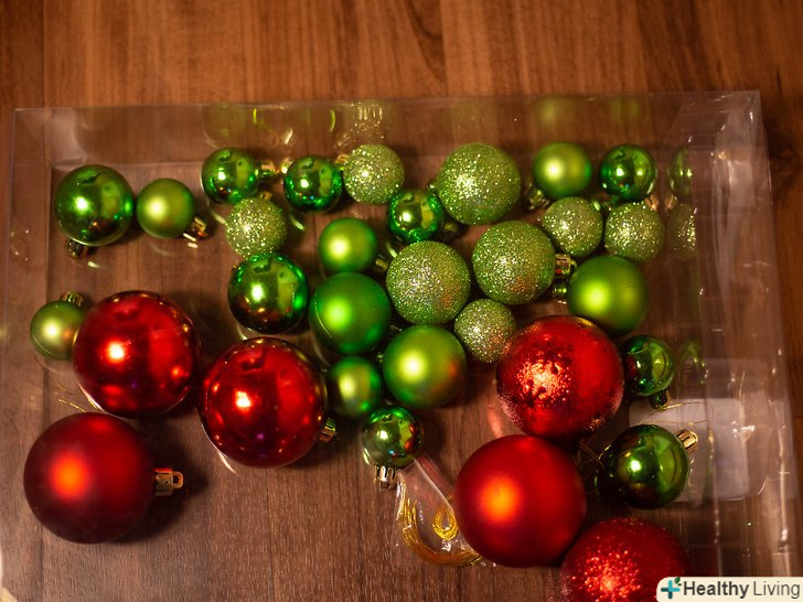 Перед тим як розвішувати прикраси, розділіть їх за категоріями. розкладіть їх в окремі групи або коробки. Категорії можуть бути такими: за кольорами, за матеріалами, всі прикраси на снігову тему, Всі Прикраси на релігійну тему і так далі.- Якщо ви берете великий готовий набір ялинкових іграшок зі скла, вдалою думкою буде створити міні-категорії: всі кулі з однаковим візерунком, всі фігурки одного виду і так далі. Цей же підхід підійде, якщо у вас багато однотипних прикрас, наприклад різноманітних сніжинок або куль одного кольору, але з різним малюнком.