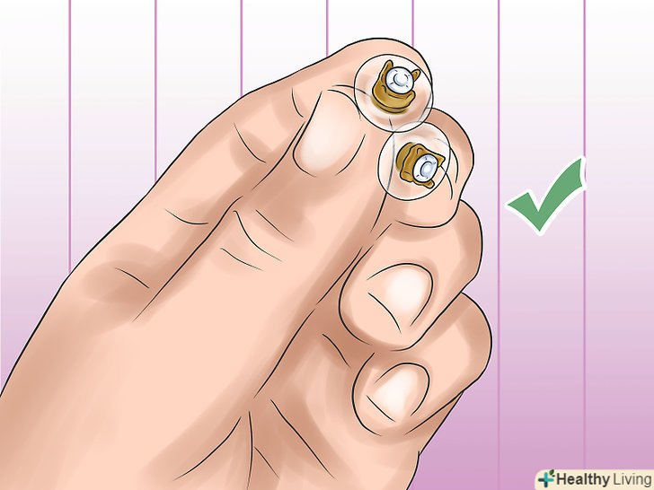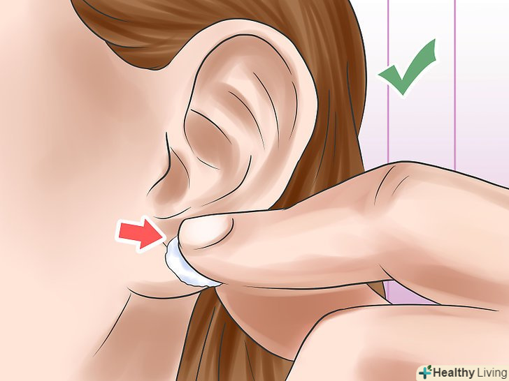 - Використовуйте ватний тампон, змочений в мильній воді. Проверніть сережку в вусі кілька разів. Промийте і насухо протріть місце проколу. Повторюйте два рази на день. [20]