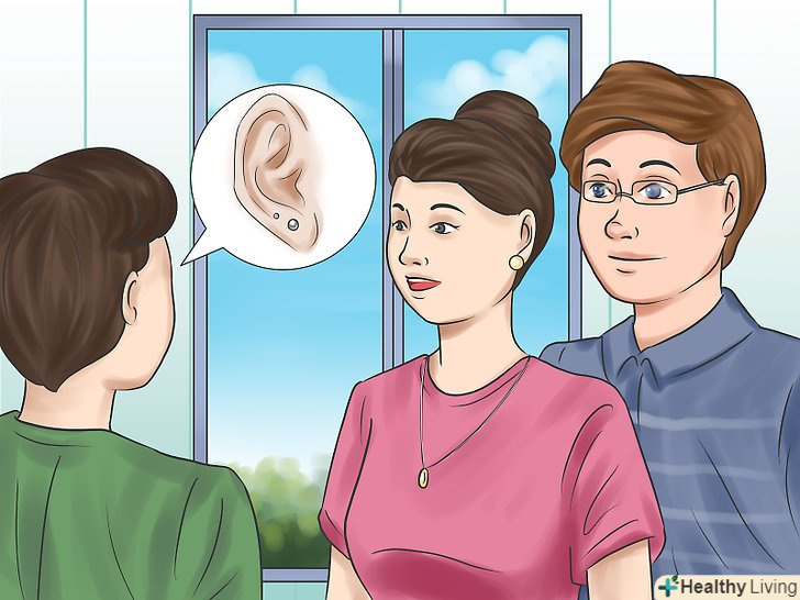 Поговоріть з батьками. якщо ви збираєтеся проколоти вуха, то обов'язково обговоріть питання з батьками. Напевно у них є свої погляди щодо пірсингу і вони захочуть, щоб ви почекали до певного віку.- Поговоріть з батьками в спокійній обстановці (наприклад, в загальній кімнаті після уроків). Не забудьте вибрати відповідний момент, щоб вас нічого не відволікало від розмови.