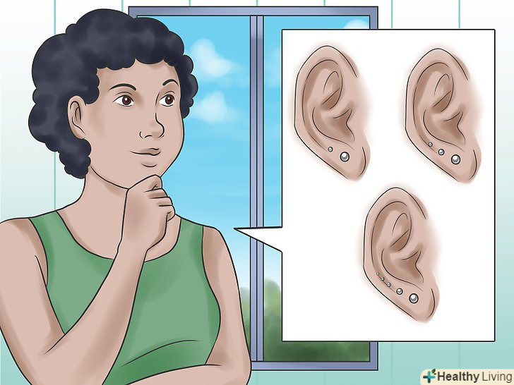 Враховуйте місце роботи або навчання. ви вже працюєте? Які норми щодо зовнішнього вигляду прийняті в школі? Деякі роботодавці забороняють певні види пірсингу. Рідко хто заперечує проти звичайного проколу мочок, але проколи хрящів, кілька проколів у вухах і інші нестандартні види пірсингу часто заборонені на робочому місці або в навчальному закладі.- Вивчіть правила щодо зовнішнього вигляду. Зазвичай вони вказані в спеціальній методичці, яку видають на початку навчального року разом із загальними правилами. Також можна дізнатися про такі правила у класного керівника або завуча з виховної роботи. Заздалегідь дізнайтеся, які види пірсингу дозволені.