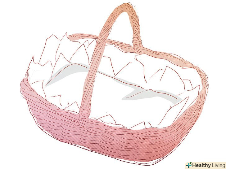 Подумайте над кольором кошика. колір може залежати від пори року, події, наприклад, народження дитини, або від смаку одержувача. Наприклад, якщо ви будете дарувати кошик восени, використовуйте речі помаранчевих квітів, ви також можете покласти туди кілька помаранчевих або золотистих квітів. Якщо збираєтеся подарувати взимку, використовуйте білі і сині кольори.
