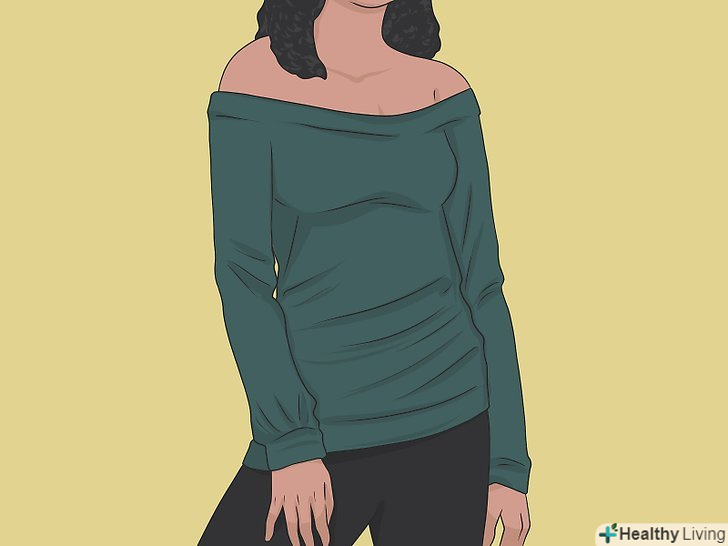 Вибирайте одяг, в якій ви відчуваєте себе комфортно. найважливіше при виборі одягу для носіння без бюстгальтера – це те, як ви себе в ній відчуваєте. Не надягайте нічого такого, в чому вам буде некомфортно або ніяково. Вибирайте речі, які підкреслюють достоїнства вашої фігури, підходять до Вашого стилю і в яких ви відчуваєте себе красивою і впевненою.- Наприклад, якщо топ з глибоким декольте змушує вас соромитися, то для вас це не найкращий вибір. Замість нього виберіть топ з відкритою спиною або плаття на бретелях.