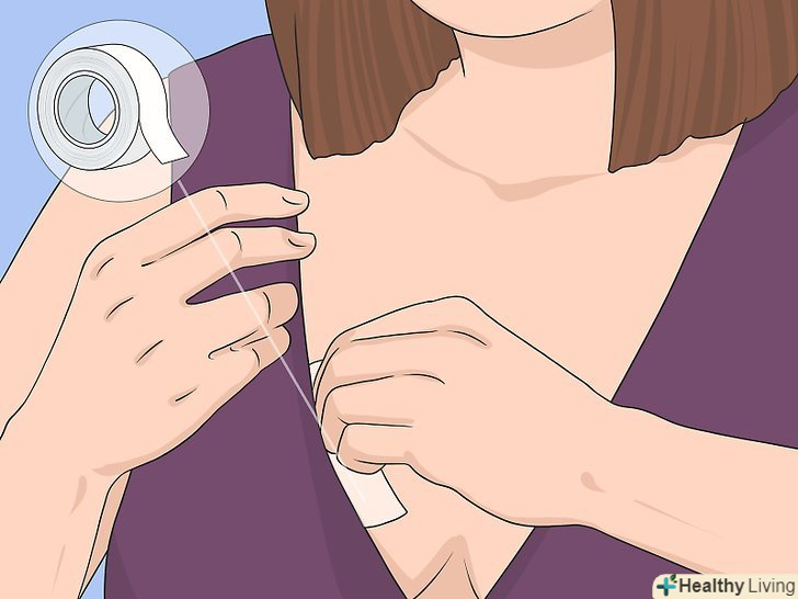 Використовуйте спеціальний двосторонній скотч для фіксації лінії декольте. ви можете відчувати себе впевненіше, якщо лінія горловини вашого одягу з глибоким вирізом буде надійно приклеєна до грудей. Так горловина не зможе випадково зміститися і оголити груди. Скотч для декольте ідеально зафіксує лінію горловини в потрібному положенні. [8]- Наклейте скотч по краю вирізу з внутрішньої сторони, а потім притисніть його до шкіри, щоб зафіксувати положення.
