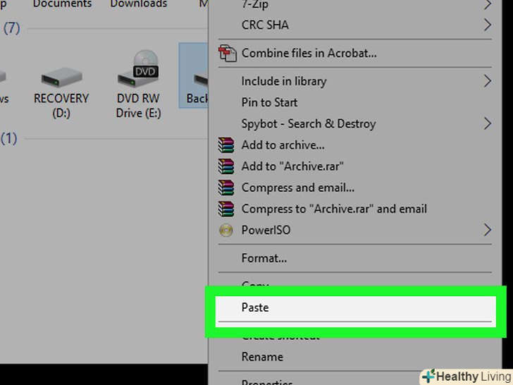 Вставте файл (и). клацніть по порожньому простору у вікні жорсткого диска, а потім натисніть Ctrl + V . Файли будуть скопійовані на жорсткий диск.- Якщо ви копіюєте файли з жорсткого диска на комп'ютер, зробіть наступне: виділіть потрібні файли, скопіюйте їх (натиснітьCtrl + C ), відкрийте відповідну папку на комп'ютері, а потім натисніть Ctrl + V .