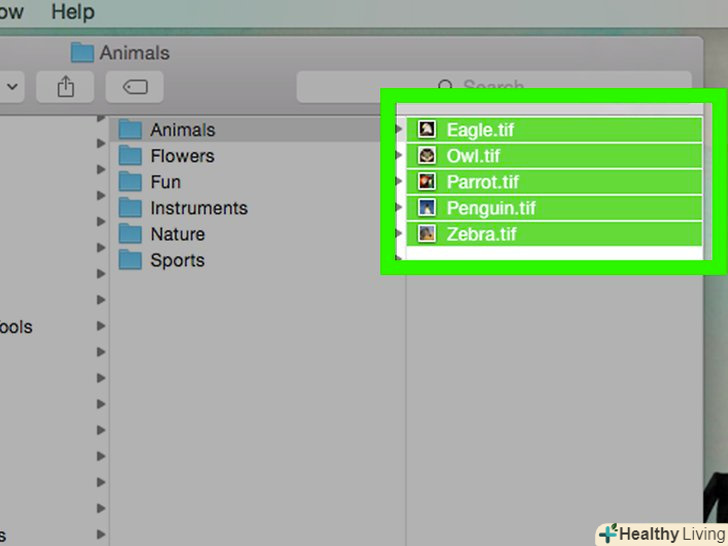 Виділіть файли. затисніть ліву кнопку миші і перетягніть Покажчик над потрібними файлами, або затисніть клавішу ⌘ Command і клацніть по кожному потрібному файлу.- Також можна натиснути на будь-який файл, а потім натиснути⌘ Command + A , щоб виділити всі файли в папці.