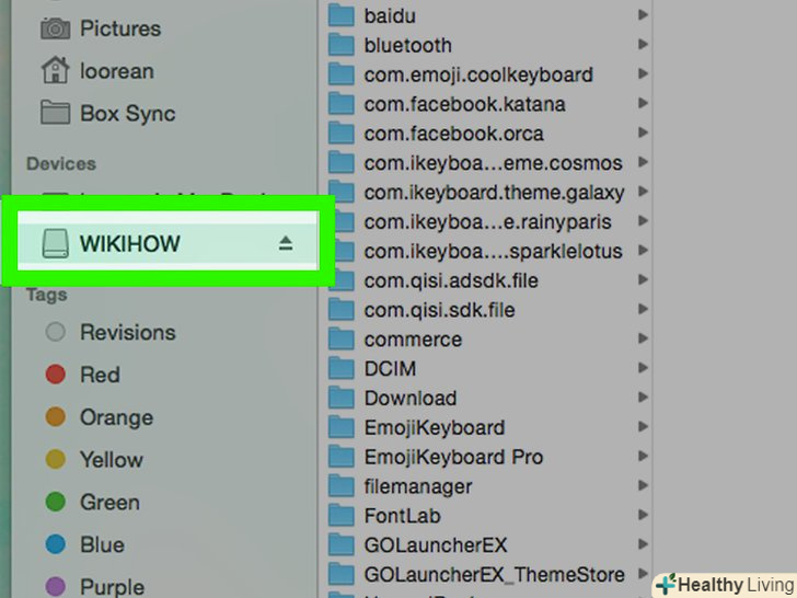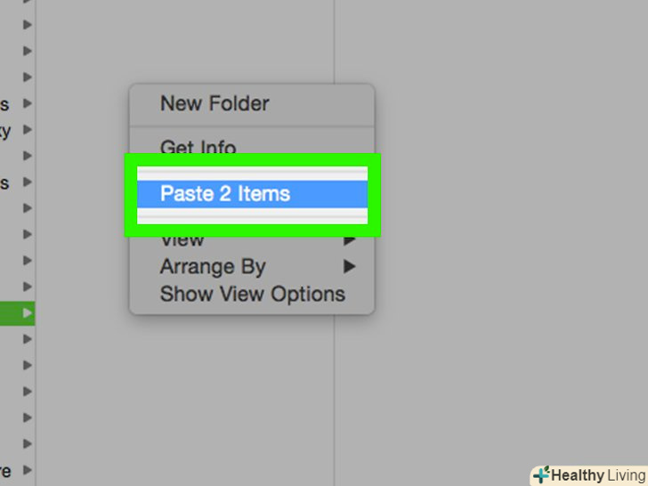 Вставте файл (и). клацніть по порожньому простору у вікні жорсткого диска, а потім натисніть ⌘ Command + V . Файли будуть скопійовані на жорсткий диск.- Якщо ви копіюєте файли з жорсткого диска на комп'ютер, зробіть наступне: виділіть потрібні файли, скопіюйте їх (натисніть⌘ Command + C ), відкрийте відповідну папку на комп'ютері, а потім натисніть ⌘ Command + V .