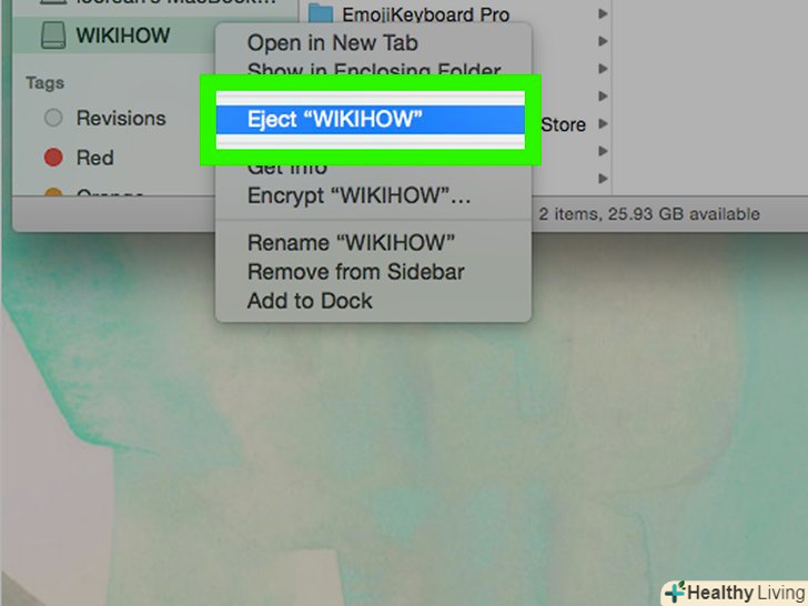 Вийміть жорсткий диск. для цього у вікні Finder клацніть по значку у вигляді трикутника праворуч від імені підключеного жорсткого диска, а потім вимкніть жорсткий диск від комп'ютера, коли з'явиться запит.