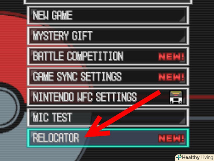Отримайте Селебі.легендарний покемон Селебі продавався в 2011 році на Game Stop. Якщо у вас його немає, вам доведеться його позичити у одного з друзів, або використовувати коди і чіти, щоб додати його в свою команду.- Вам знадобиться спеціальна опція в меню під назвою Relocator. опція Relocator дозволяє Вам ввести легендарного покемона Селебі в гру. Щоб відкрити цю опцію, треба: