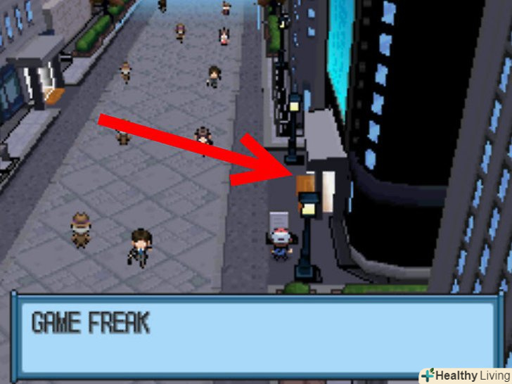 Знайдіть будівлю Game Freak і зайдіть в нього.це чорна будівля праворуч від вулиці Кастелія, в східній частині міста. Це перша вулиця праворуч після мосту.