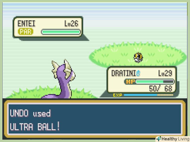 Бийтеся з ним.після того, як ви знайдете спосіб запобігти втечі Легендарного звіра, зловити його буде не складніше будь-якого іншого покемона. Зменшіть його здоров'я якомога сильніше (але не дайте йому втратити свідомість), киньте в нього Ультрабол і сподівайтеся на краще.- Зберігайте гру частіше, адже якщо легендарний звір випадково втратить свідомість, то у вас більше не буде іншого шансу його зловити.
