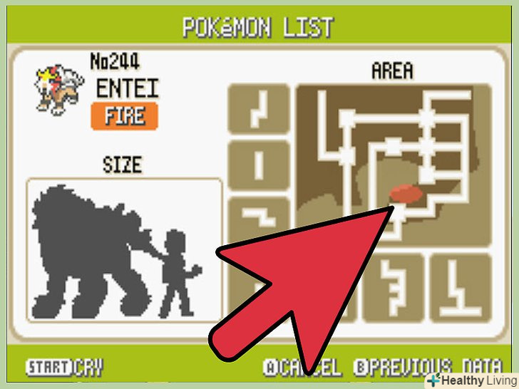 Відстежте покемона по Покедексу.якщо вам нарешті попадеться легендарний звір, але він від вас втече — не турбуйтеся. Його місце розташування тепер буде відображатися на карті в Покедексі, завдяки чому знайти його буде набагато простіше.[3]- Розташування Легендарного звіра буде змінюватися після кожного польоту, битви, входу в будівлю або зміни маршруту. Це може здатися перешкодою, але нею можна скористатися. Сядьте на велосипед, використовуйте Надспрей і почніть їздити по траві. Якщо через 30 секунд покемон вам так і не попадеться — увійдіть в будинок. Коли ви вийдете, легендарний звір перейде в іншу локацію. Повторіть весь процес знову, поки не зустрінете його.