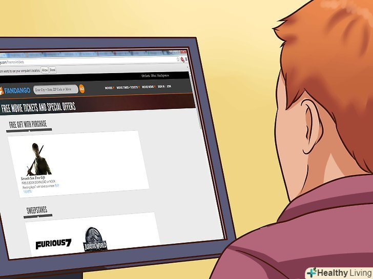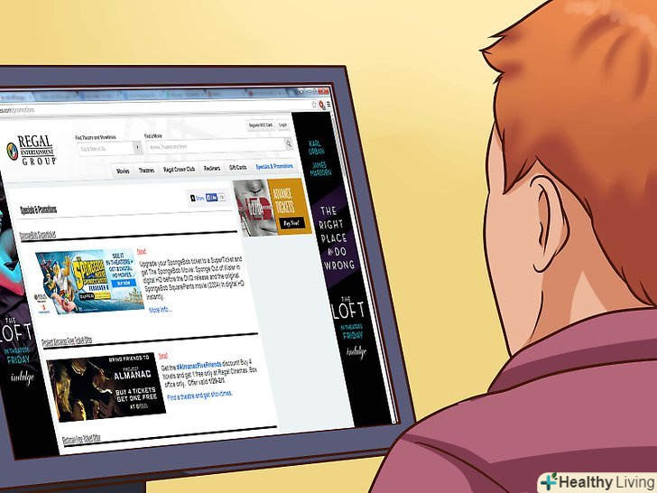 Шукайте вигідні пропозиції в Інтернеті.як приклад нижче наводимо список веб-сайтів, які містять промо-акції на отримання знижок, наприклад, на поп-корн, і інші менш хвилюючі новини. Але іноді там можна знайти і безкоштовні квитки на кінопоказ або спробувати взяти участь в кіно-лотереї і отримати шанс виграти безкоштовні квитки. Шукайте подібні веб-сайти, які пропонують подібні акції у вашій країні: