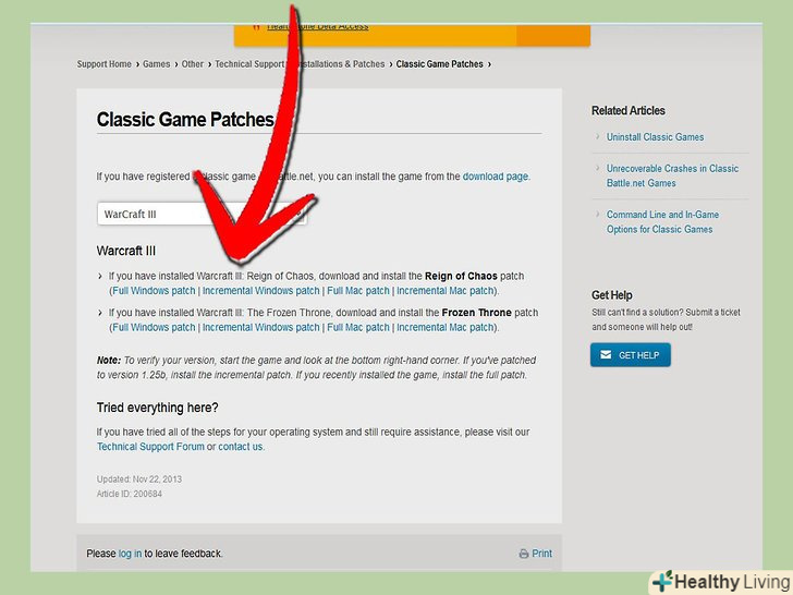 Скачайте патч. ви можете дістати останню версію патча безпосередньо з сайту Blizzard або підключитися до Battle.net і завантажити його автоматично. Якщо ви підключитеся до Battle.net прямо з гри, патч буде завантажений і встановлений автоматично.- Для того щоб офіційно пропатчити Warcraft 3 через Blizzard, вам знадобиться аккаунт Battle.net. саме аккаунт запобігає піратство, так як відпадає потреба в диску.