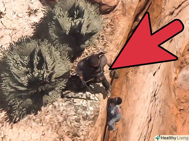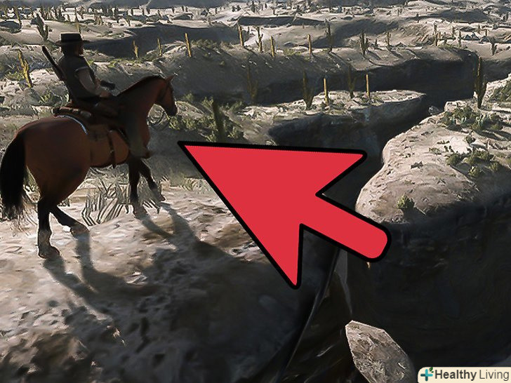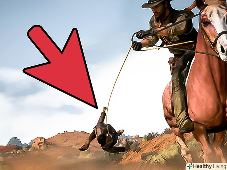 Скиньте свою жертву через край скелі, карниза або моста, на якому ви знаходитесь.це можна зробити, поїхавши по діагоналі по скелі, а потім повернувши коня паралельно йому. Ваша жертва скотиться з кручі, а коли ви зупинитеся, вона буде висіти в повітрі з кручі. Не забувайте міцно тримати мотузку. Цей крок можна пропустити, якщо ви використовуєте метод з мостом Перекотиполе, так як ваша жертва підвисне, як тільки ви закинете на неї ласо, коли вона буде проходити під ним.