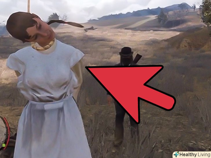Сядьте на коня і знайдіть жертву для упіймання.в ідеалі, жертва повинна знаходитися поруч з обраним місцем повішення, щоб до того часу поки ви доберетеся до нього, ваша жертва не померла від того, що її тягли по землі. Якщо ж ви використовуєте міст до Перекотиполю, ви просто повинні почекати, поки жертва буде проходити під ним.
