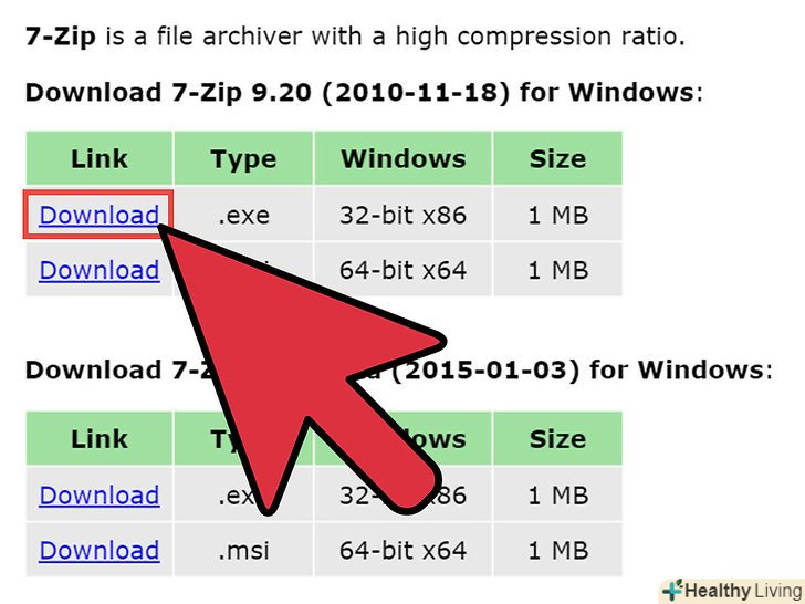 Скачайте і встановіть 7-Zip. Це безкоштовна програма архівування, яка відкриває .7z файли. Її можна завантажити з 7-zip.org.