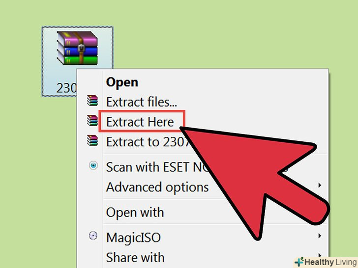 Вийміть файли SKSE. після установки 7-Zip клацніть правою кнопкою миші на архіві і виберіть7-Zip → витягти тут . Папка з витягнутими файлами буде створена в тому ж місці.