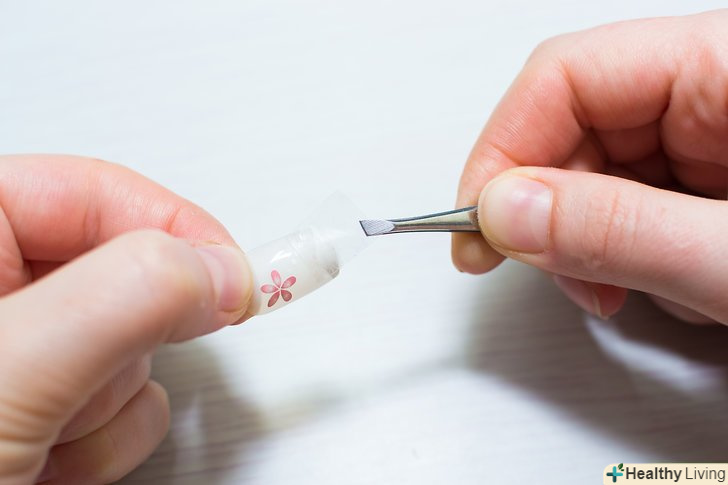 Зріжте край нігтя. щоб тріщина не пішла далі і ніготь виріс рівно, вирівняйте його краю. Наприклад, якщо тріщина була вертикальною, але не пройшла по всій довжині нігтя, щипцями або ножицями видаліть залишки нігтя поблизу кінчика пальця. Потім згладьте край пилкою з дрібним зерном. [41] [42]- Якщо тріщину вдалося зрізати, але ніготь все одно нерівний в окремих місцях, наприклад в куточках, акуратно підпиляєте ці ділянки пилкою, щоб ніготь став більш рівним.