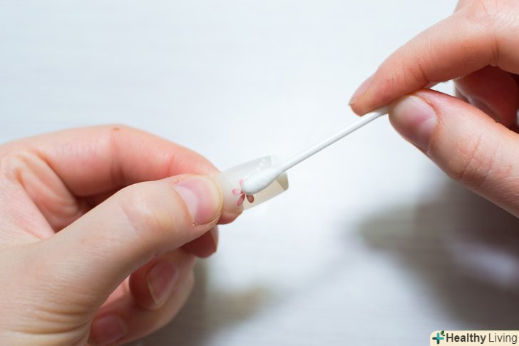 Очистіть ніготь. щоб змити клей навколо нігтя, намочіть ватний диск або ватяну паличку засобом для зняття лаку з ацетоном і притисніть до клею. Коли клей просочиться рідиною, він розчиниться. Після цього протріть ніготь чистою тканиною. [36] якщо клей не змився, не відривайте його руками. Візьміть рідину для зняття лаку і повторіть все заново. Щоб змити клей для нігтів, опустіть ніготь і інші ділянки шкіри, на які потрапив клей, в теплу воду на 2-3 хвилини. Акуратно зніміть розм'якшений клей з шкіри або нігтя. Якщо пляма клею не змивається, акуратно підпиляєте його, потім нанесіть рідину для зняття лаку ватним диском або ватною паличкою, потримайте пару хвилин і витріть насухо. [37] [38]- В кінці ретельно вимийте руки теплою водою з милом.