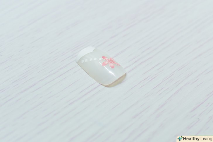 - Нанесіть ще один шар основи під лак, а потім сам лак. як слід відшліфувавши ніготь, помийте палець, щоб позбутися від пилу і шматочків матеріалу заплатки. Протріть палець чистим рушником, перш ніж наносити ще один шар основи. Зачекайте дві хвилини і покрийте ніготь двома шарами лаку. Кожному шару потрібно не менше двох хвилин, щоб підсохнути. В кінці нанесіть захисне покриття, щоб закріпити лак. [15] [16]
