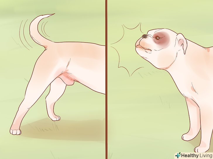 Звертайте особливу увагу на мову тіла собаки. Мова тіла собаки може розповісти вам, як вона себе почуває в певній ситуації, передати її настрій або дати зрозуміти, чи сприйнятлива вона до інших собак і людей у своєму просторі.- Собаки в розслаблених позах, які з ентузіазмом виляють хвостом або б'ють їм по підлозі, собаки зі щасливим виразом обличчя, наприклад посмішкою, які грайливо вигинаються (передом тіла до підлоги, виляючи хвостом), щасливі і сприйнятливі до гри! [1]