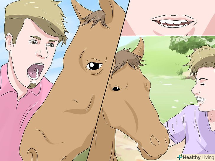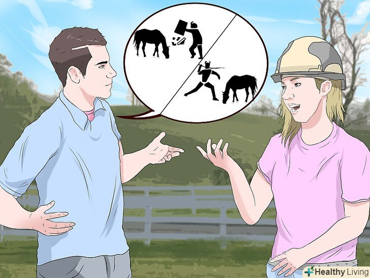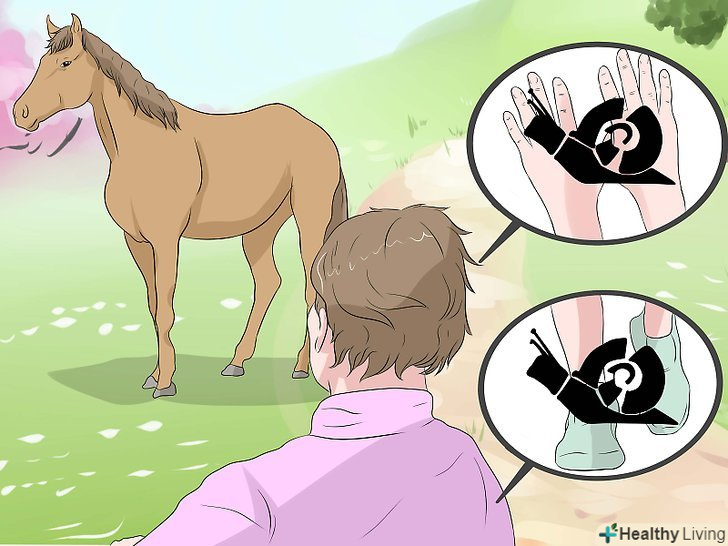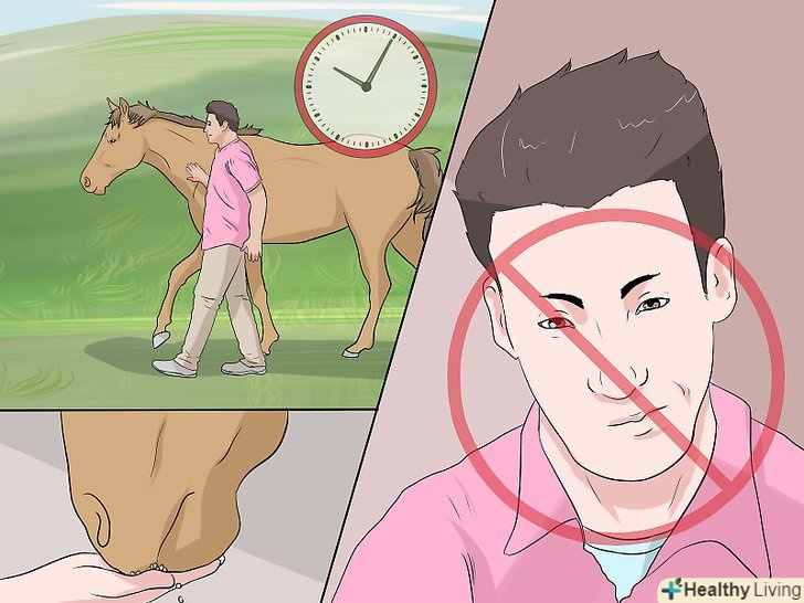 - Не вступайте з конем в прямий зоровий контакт, коли наближаєтеся до неї. [16]