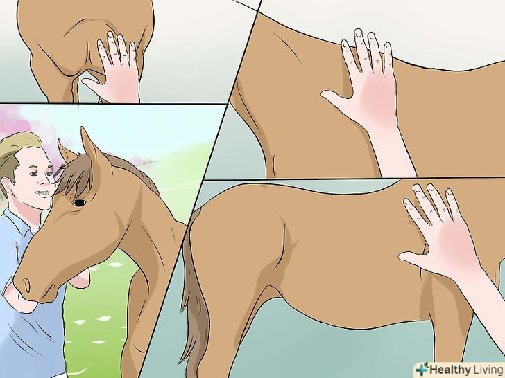 Почніть торкатися коня. постраждала від поганого поводження Кінь може противитися дотиків, так як вони можуть асоціюватися у неї з фізичним болем і покаранням. З цієї причини ви повинні бути гранично обережні з тим, як і в яких місцях торкаєтеся до коня. Почніть з ласкавого чухання грудей, плеча або холки. [21]- Слідкуйте за мовою тіла коня, коли чіпаєте її. Кінь, що зазнала поганому поводженню, може бути особливо полохливою і схильною до раптових рухів. Постійне спостереження за мовою тіла коня дозволить вам швидко піти в сторону, якщо ви відчуєте наростання страху і тривожності у тварини.