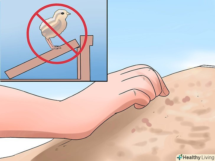 Побудуйте помости з піску, що ведуть до гнізда. пташенята, що вилупилися, не вміють літати і можуть впасти на землю і загинути. Піщаний спуск дозволить їм йти за мамою. Найкраще робити спуски з піску, оскільки пташенята можуть застрявати в щілинах дерев'яних помостів. [32]- Помости також повинні бути між усіма сходинками в загоні.