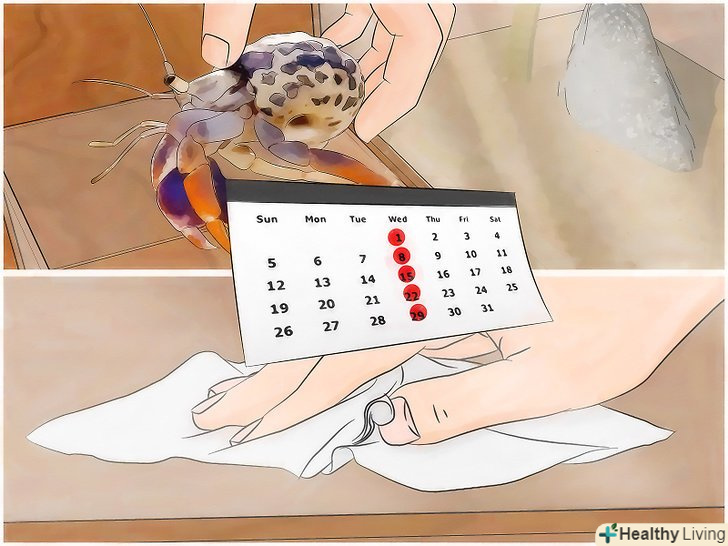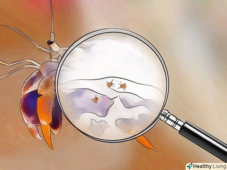 Щодня перевіряйте, чи немає у вашого вихованця кліщів. слід щодня оглядати рака-відлюдника. Робіть це при хорошому освітленні і перевіряйте, чи немає на раковині та інших частинах тіла тварини дрібних рухомих точок. [14]- Якщо ви виявите на тілі раку кліщів, необхідно як слід помити його в дехлорованої воді і ретельно почистити акваріум і його вміст. Це єдиний спосіб позбутися від кліщів і запобігти їх повторній появі.
