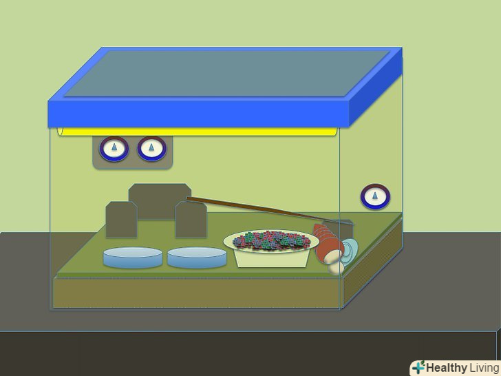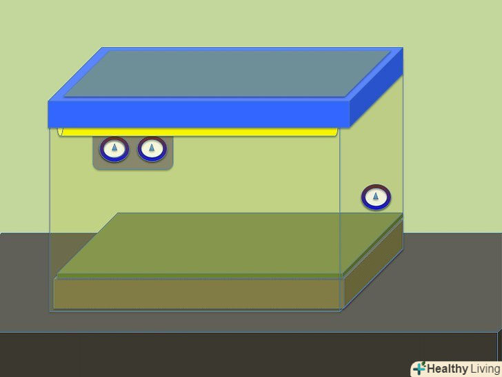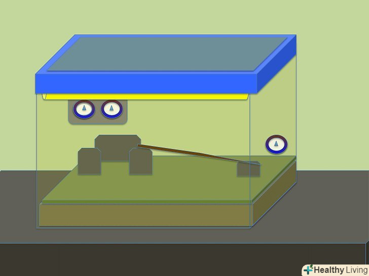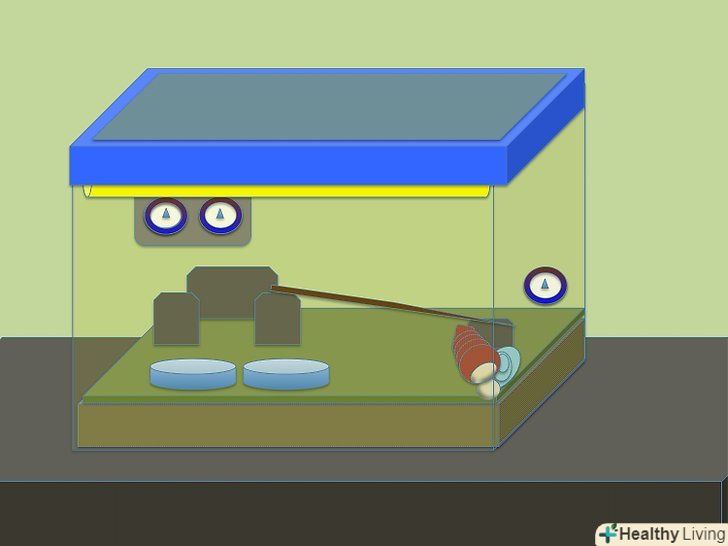- Можна на теплому кінці акваріума розмістити нагрівач. Обов'язково стежте за тим, щоб температура не піднімалася вище 28 градусів Цельсія. Нагрівач може підняти температуру в акваріумі до 38 градусів Цельсія і вище! Навіть якщо ви не відчуваєте, що температура підвищується, ваш вихованець це безумовно помітить. В акваріумі також можна розмістити верхнє світло і теплову лампу. Деякі використовують для лампи спеціальні затискачі. Наприклад, для рептилій потрібні інфрачервоні лампи. Раки-відлюдники потребують нормальному циклі (день-ніч), тому якщо вам потрібно нагрівати Акваріум вночі, краще використовувати лампочку з місячним світлом і без ультрафіолетових променів.