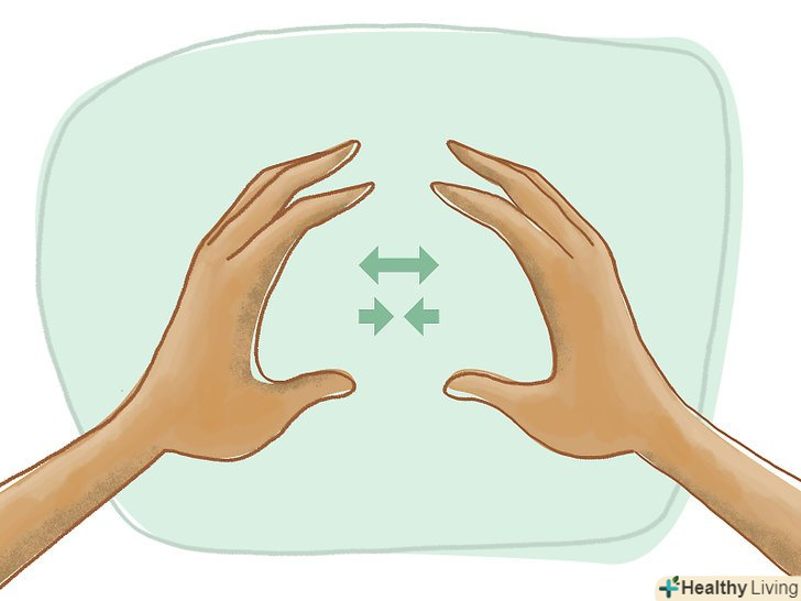Повільно розводьте руки приблизно на 10 сантиметрів, а потім так само повільно з'єднуйте їх разом, але не дозволяйте кінчиків пальців стикатися. Якщо ж ваші руки стикнутися, ви більше не зможете відчувати ауру. Аура, що виходить від обох рук, сформує між ними зону опору, яку Ви повинні будете відчути, коли ваші руки будуть рухатися у напрямку один до одного. У вас виникне відчуття, ніби ви затискаєте між долонями маленький повітряна кулька, і, коли відстань між вашими руками буде скорочуватися, ви відчуєте, як цей "кулька" стискається.