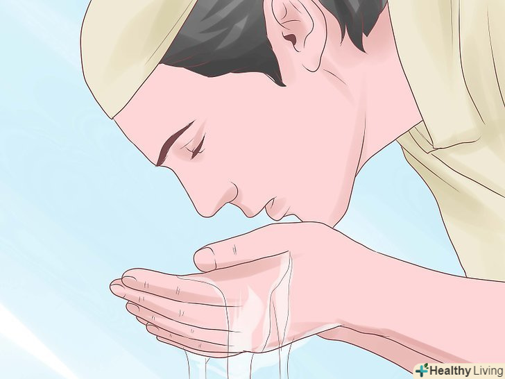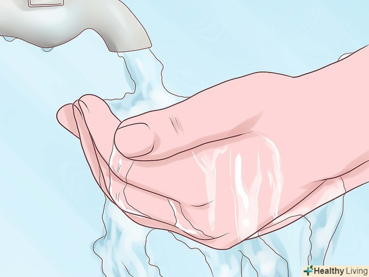 Вимийте руки. вимийте вашу праву руку за допомогою лівої. Зробіть це три рази. Після цього три рази вимийте ліву руку за допомогою правої. Переконайтеся, що помили між пальцями, а також всю руку аж до зап'ястя. [1]