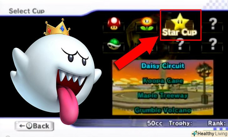 Виграйте зірковий кубок 50cc (Star Cup) або візьміть участь у 750 гонках[9] . Відкриється Кінг Бу.