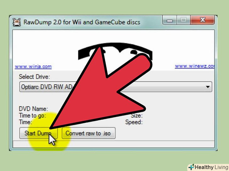 Вставте Wii-диск, який ви хочете скопіювати (або вкажіть розташування скачаного файлу з грою) в CD або DVD привід комп'ютера і натисніть copy (Копіювати). програма розкодує захист Wii-гри. Дані з диска з грою Wii будуть скопійовані на ваш жорсткий диск. Це займе близько 30 хвилин.