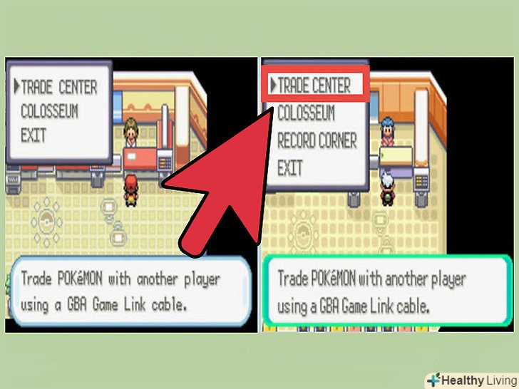 Здійсніть обмін. переконайтеся, що кабель надійно з'єднує обидві консолі, після чого приступите до обміну. Дані будуть видалені з гри LeafGreen / FireRed і скопійовані в Emerald.