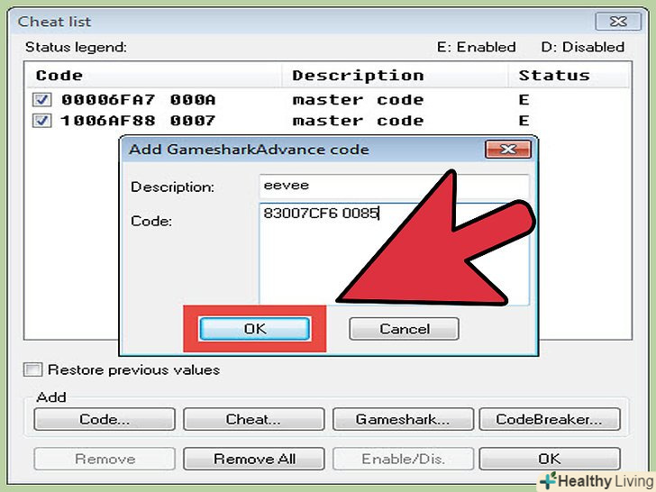 Вставте в GameShark код 83007cf6 0085. введення коду для Іві повинен миттєво спрацювати. Запустіть GameShark і введіть код. В результаті цих дій в дані гри будуть внесені зміни, а Іві з'явиться у вашій групі. [2]- Не забудьте задіяти майстер-код (00006FA7000A 1006af880007), якщо з активацією коду виникнуть будь-які труднощі. [3]