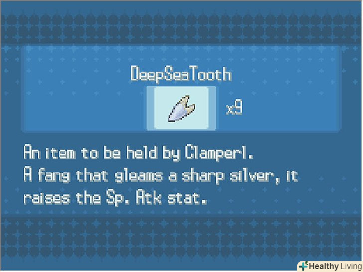 Отримайте Ікло глибин, або ж луску глибин. Ікло глибин знадобиться вам для розвитку Клемперла в Хантейла, а луска глибин стане в нагоді вам для переходу в Горбіса. Ви можете отримати тільки одного з двох покемонів.- Рубін, Сапфір і смарагд - для того, щоб отримати потрібні елементи, необхідно бути в змозі нирка або серфінгу. Перемістіться на трасу 108 і використовуйте Серфінг для переходу до покинутого корабля. Потім застосуйте нирок для переходу в другу частину корабля.