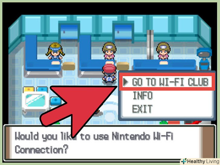 Знайдіть Pokemon Wi-Fi Club. він розташований на нижньому поверсі місцевого центру покемонів. За центральним прилавком ви побачите двох жінок. Почніть діалог, після чого вони запитають вас, чи бажаєте ви скористатися функцією Nintendo WFC. Коли Вам нададуть вибір, натисніть "Так".