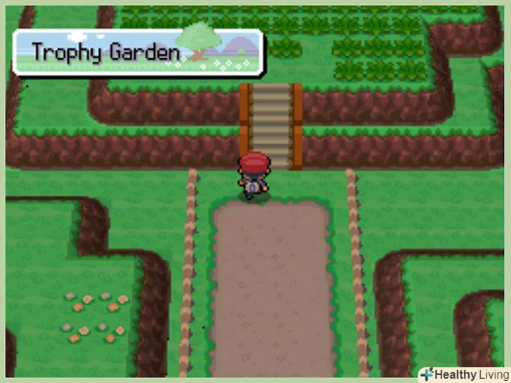 Відшукайте Сад трофеїв (Trophy Garden). сад трофеїв-це локація, яка знаходиться за маєтком покемонів і в якій можна виявити безліч рідкісних покемонів. [4] позаду будівлі ви повинні побачити прямокутну ділянку землі на пагорбі, до якого ведуть сходи.