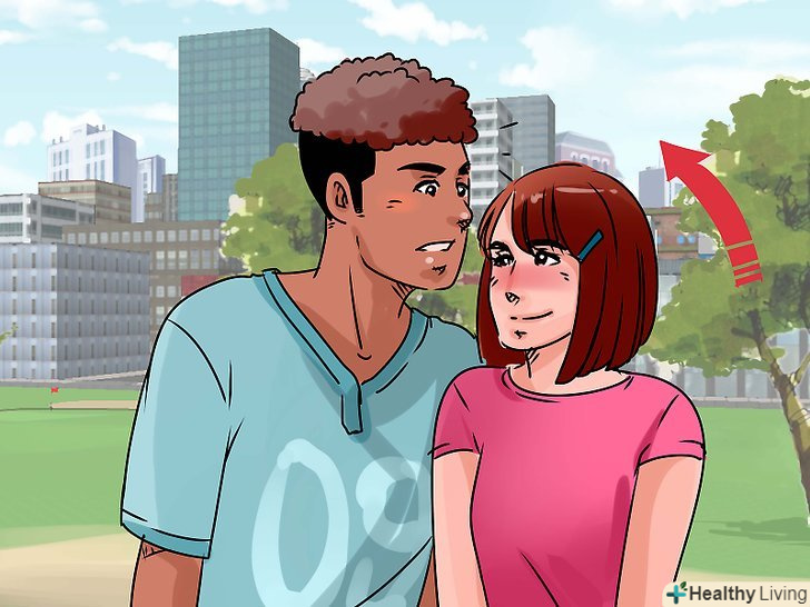 Спробуйте зблизитися. Покажіть свій інтерес, грайливо торкаючись його руки, плеча або обличчя. У разі дотиків хлопець зрозуміє, що він вам подобається. Тепло обіймайте його при зустрічах або на прощання. [7]