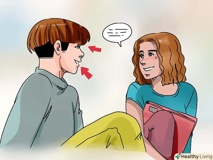 Посміхайтеся йому. використовуйте свою найпривабливішу посмішку кожен раз, коли бачитеся з ним або він розповідає жарт. Спробуйте посміхатися і злегка фліртувати. Хлопцеві необхідна впевненість, щоб діяти рішуче. [6]
