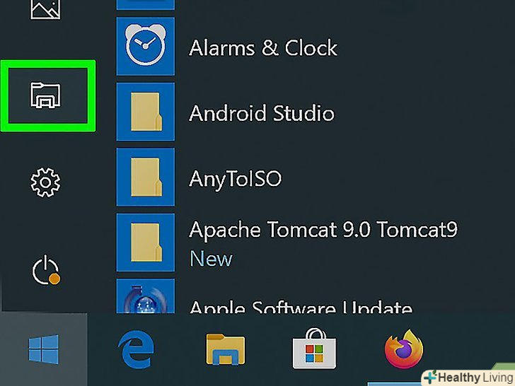 Відкрийте вікно Провідника. натисніть на значок у вигляді папки в нижній лівій частині вікна.