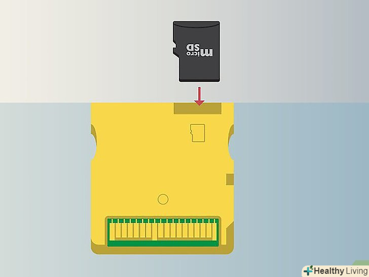 Вставте карту microSD в адаптер, що додається.у верхній частині адаптера є невеликий слот, в який потрібно вставити карту microSD.- Карту microSD можна вставити тільки одним способом, тому якщо вона не входить в слот, не старайтеся — просто переверніть карту і повторіть спробу.