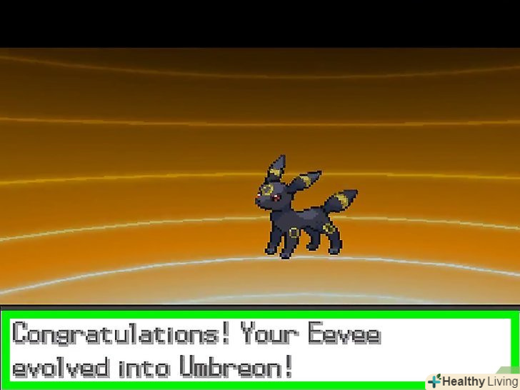 Підніміть рівень Іві між 8:00 вечора і 4: 00 ранку.після того, як у вас з Іві набереться високий рівень дружби, потрібно буде битися з нею в команді ще як мінімум раз, щоб підняти її рівень.- Після того, як покемон отримає новий рівень вночі (з 8:00 вечора до 4:00 ранку), Іві еволюціонує в Амбреона.