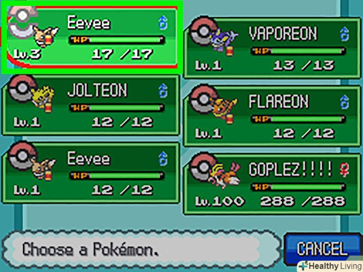 Купуйте шість покемонів Іві.якщо у вас все ще недостатньо монет, щоб купити відразу шість покемонів, спочатку потрібно їх заробити. Це може зайняти деякий час.- Ви також можете залишити Іві в центрі денного догляду (Pokémon Day Care) на маршруті 34 з Дітто, а потім вивести нових покемонів з яєць, які у них вийдуть. Швидко можна це зробити, переміщаючись з центру денного догляду в місто і назад на велосипеді. Це досить нудно, так що в цей час можна подивитися телевізор або послухати музику. Ви отримаєте повідомлення з центру, як тільки з'являться яйця, і потім покемони з'являться на світ.