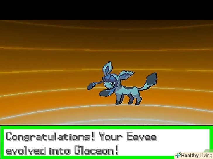 Підніміть рівень Іві, коли вона опиниться в снігу поруч з каменем, покритим льодом.у бойовому режимі разом з Іві обійдіть камінь, поки не зустрінете покемона, з яким можна битися. Як тільки Іві отримає рівень, вона перетвориться в Гласеона.