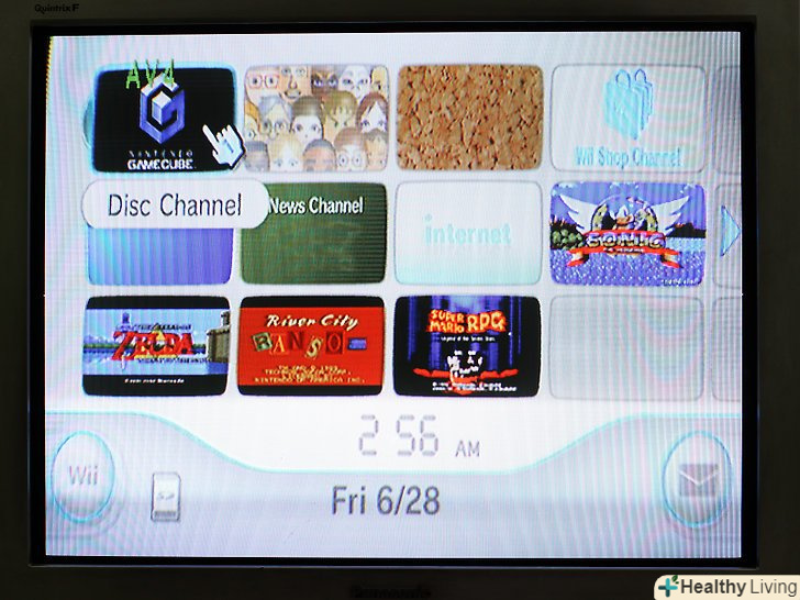 Вставте диск GameCube.вірите ви цьому чи ні, але він сумісний з роз'ємом Wii DVD (ігри Wii використовують диски побільше). Вставляти диски не так складно, як це може здатися. Просто вставте диск так, як Ви б вставили гру Wii, обкладинкою диска вгору (сторона з написами, логотипами і т.д.). Не має значення, наскільки далеко вгору або вниз ви вставите диск, консоль все одно зможе його прочитати.