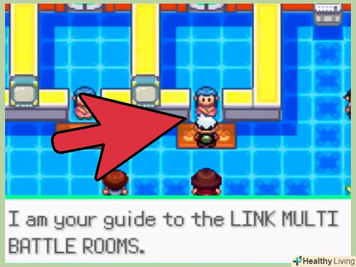 Надішліть покемона з мастерболом в Link Multi Battle.Поговоріть з першою дівчиною біля стійки праворуч, щоб увійти в Link Multi Battle. Виберіть покемона, що тримає мастербол.